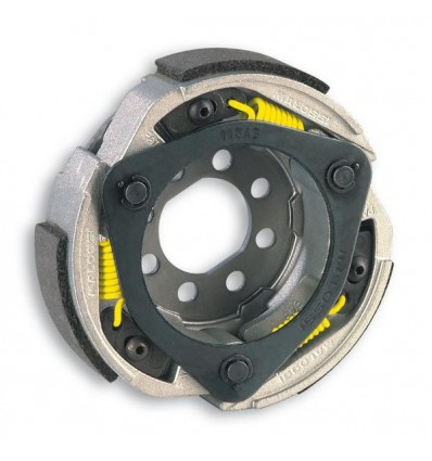 Frizione regolabile Malossi modello Maxi Delta Clutch (art. 5211888). Questa frizione a tre masse centrifughe è stata rinforzata ed ottimizzata per ottenere un miglioramento della partenza da fermo, spesso rallentata da rapporti allungati, sovraccarico o per gestire trasmissioni elaborate. Ha infatti la possibilità di regolare il tiraggio delle tre mollette secondo necessità.