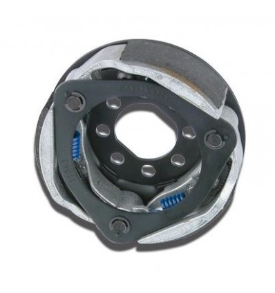 Frizione regolabile Malossi modello Maxi Delta Clutch (art. 5212450). Questa frizione a tre masse centrifughe è stata rinforzata ed ottimizzata per ottenere un miglioramento della partenza da fermo, spesso rallentata da rapporti allungati, sovraccarico o per gestire trasmissioni elaborate. Ha infatti la possibilità di regolare il tiraggio delle tre mollette secondo necessità.