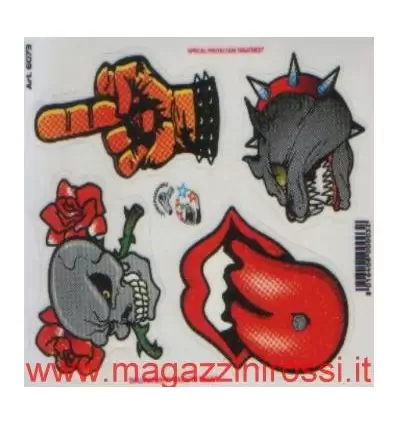 Set adesivi piccolo mix vari disegni art.6073. Questo adesivo è adattabile su casco, moto, scooter, auto. Realizzati con colori iridescenti e fondo trasparente. Applicare ogni adesivo su tutte le superfici è veramente semplice e la sua resistenza all'usura rimane inalterata per anni.