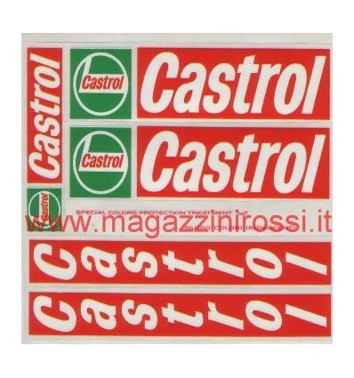 Set Adesivi piccolo 4R logo Castrol - art.832. Questi adesivi sono in speciale materiale termoformabile per applicazione anche su superfici curvate. Tutti gli adesivi del set sono separati e applicabili singolarmente. Sono realizzati con colori iridescenti e fondo trasparente. Applicare ogni adesivo su tutte le superfici è veramente semplice e la sua resistenza all'usura rimane inalterata per anni.