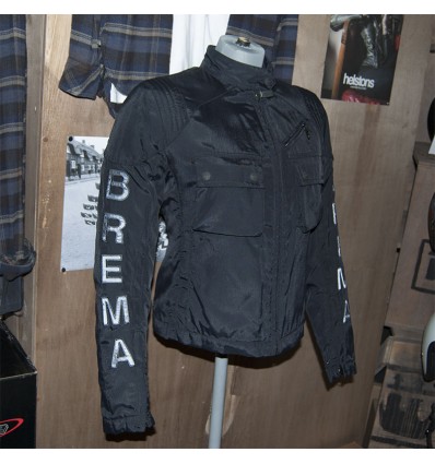Giacca BremaMoto da donna modello BM/B 0-51 W Idro logo, colore nero. Come tutte le giacche Brema, anche questo capo è stato realizzato con la maggiore cura possibile e con una oculata scelta dei materiali. Questa giubbotto è realizzato in cordura molto piacevole al tatto con applicazione di membrana interna totalmente impermeabile ed internamente imbottita con ovattina. Sulle maniche è applicato il classico logo Brema tono su tono leggermente catarifrangente. Fornita di serie con gilet interno asportabile e con protezioni omologate su spalle e gomiti. Predisposizione alloggiamento paraschiena.