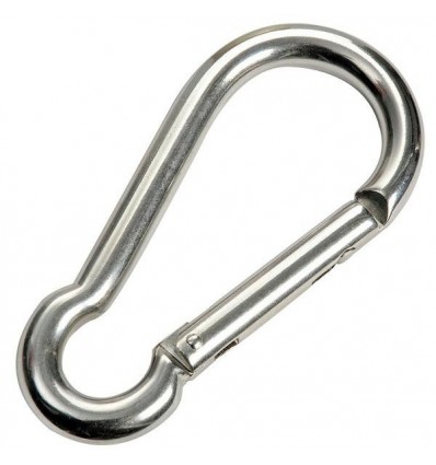 Moschettone in acciaio inox AISI 316 con apertura asimmetrica che consente il massimo passaggio.