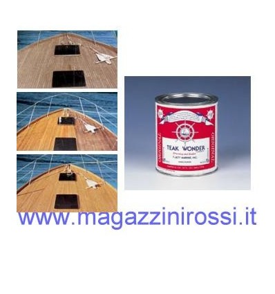 Teak Wonder protettivo Dressing Sealer in barattolo da 3 lt. Prodotto protettivo utile a mantenere il teak nel suo aspetto dorato, proteggendolo dalla sporcizia e dai raggi ultravioletti che ne provocano l'ossidazione e la decolorazione. Il trattamento, inodore e non scivoloso, contrasta la penertrazione nel legno di liquidi quali gasolio, sangue di pesce, creme solari ecc.
