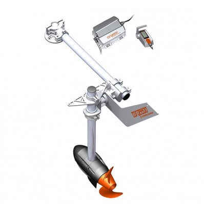 Motore fuoribordo elettrico Torqeedo linea Ultralight, modello 403 A, l'unico specifico per kayak. Come tutti i fuoribordo elettrici Torqeedo anche questo modello è caratterizzato dall' elevata potenza (400 watt in ingresso) paragonabile a quella di un fuoribordo a scoppio da 1,3 cavalli. L'elevata efficienza di questo motore garantisce una maggior durata della batteria, la sua elettronica di prima qualità rende circa il doppio rispetto agli altri fuoribordo elettrici. Questo fuoribordo è indicato per kayak ad uso turistico, kayak professionali per la pesca, canoe canadesi di tutte le dimensioni o comunque come motore ausiliario per piccole imbarcazioni. Questo nuovo motore, può essere applicato direttamente sul timone, grazie al nuovo sistema di montaggio universale, è completamente stagno con dispositivo di sicurezza che in caso di ribaltamento, spegne automaticamente i circuiti.