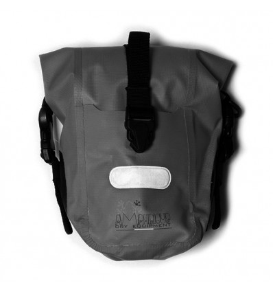 Marsupio stagno Amphibious Anura di colore nero, estremamente compatto e molto robusto, particolarmente adatto ad un uso gravoso. Dotato di chiusura Quick-Proof, che garantisce una totale tenuta all'acqua anche in caso di forte pioggia e esposizione a getti d'acqua, oltre che di galleggiabilità in caso di accidentale caduta in acqua, che lo rende idoneo per il trasporto di macchine fotografiche e oggetti elettronici. Sistema di fissaggio alla cintura o tramite fettuccia regolabile. Inoltre dotato di banda rifrangente per una totale visibilità e di una tasca esterna.